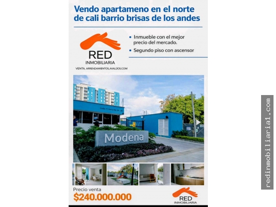 Vendo apartamento en el norte de Cali Barrio brisas de los Andes sameco apartamento moderno de 2 alcobas la principal con baño baño social estudio balcón cocina integral zona de oficios parqueadero comunitario